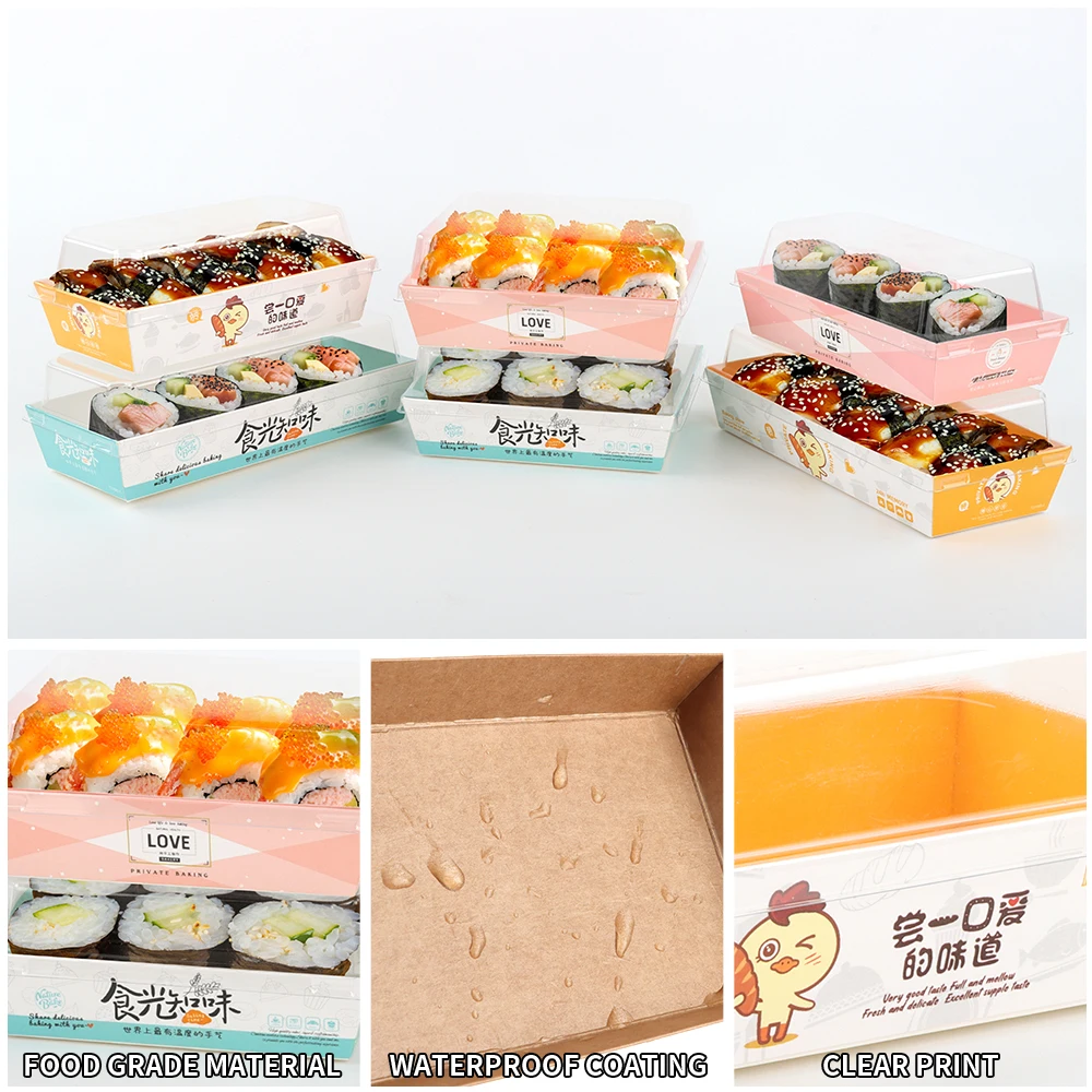 علبة ورقية للاستعمال مرة واحدة، علبة تغليف الأطعمة، علبة غداء، سوشي، شطيرة، كيك، نقانق، ورق كرافت مع غطاء بلاستيكي شفاف، عينة مجانية